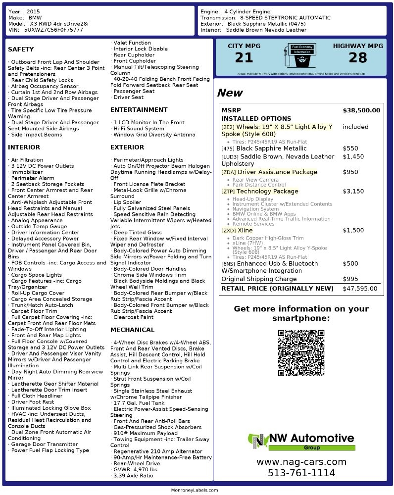 2015 BMW X3 RWD 4dr sDrive28i