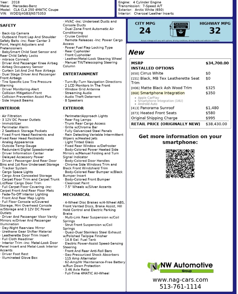 By checking this box I hereby consent to receive customer care text messages and/or phone calls from or on behalf of NW Automotive Group or their employees to the mobile phone number I provided above. By opting in, I understand that message and data rates may apply. This acknowledgement constitutes my written consent to receive text messages to my cell phone and phone calls, including communications sent using an auto-dialer or pre-recorded message. You may withdraw your consent at any time by texting "STOP" or "HELP" for help. See our https://nag-cars.com/privacy for more information.